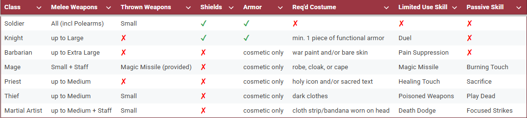 NEW THIS YEAR! You can register as a specific Class of participant. If this is confusing or intimidating, don’t worry, you can simply be entered as the default class (Soldier) and play as normal according to the basic rules. Note that you are responsible for knowing and understanding the rules and perks specific to your class, and that you should be able to clearly explain those rules to an opponent if they were to ask for clarification. If this is outside what you are comfortable with, simply play as a Soldier.